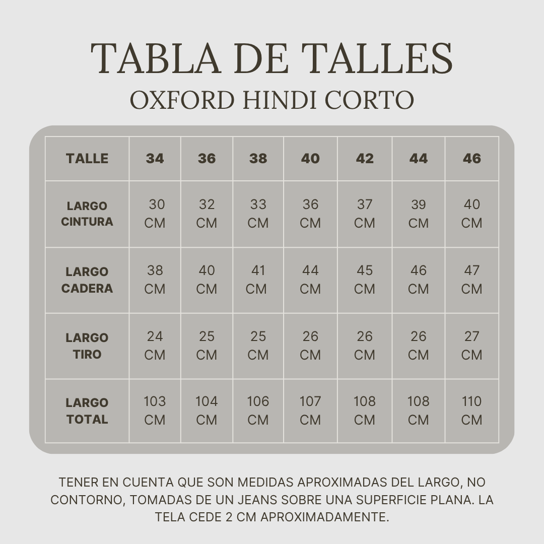 Oxford HINDI TACHAS CORTO ideal si sos de estatura baja o queres usarlo con zapatillas.